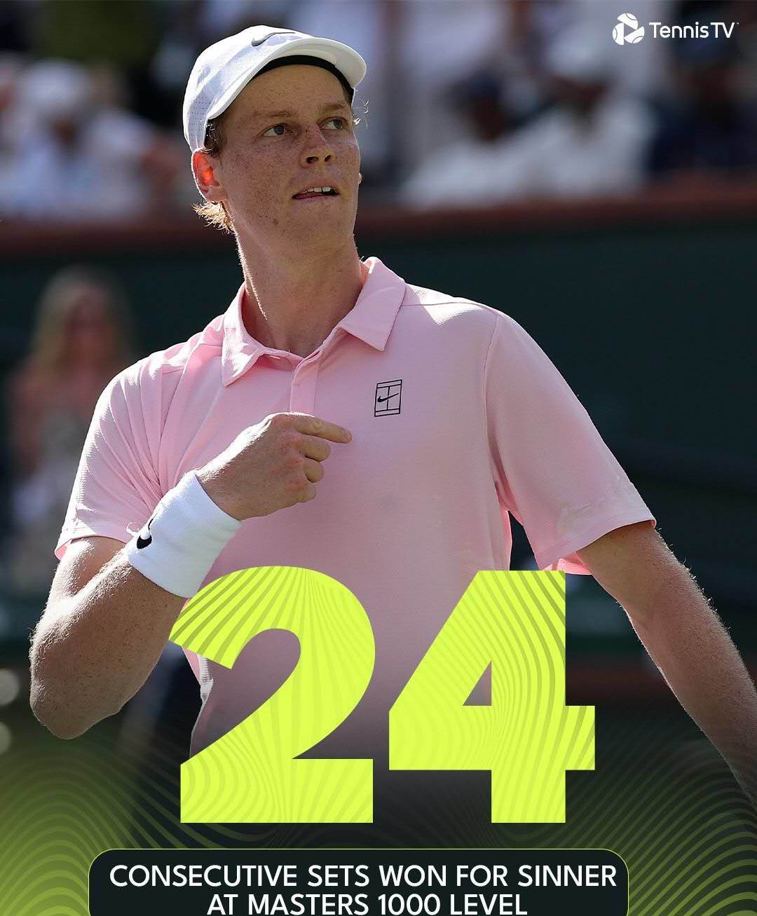 The Miami Masters has entered the third round. The newly crowned Indian Wells Masters champion Sinner easily passed the second round, thus tying Djokovic's record. They now stand together as the male singles players with the most consecutive win streaks in Masters history.