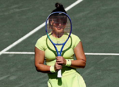 Finally, let's guess and identify. The image below shows a player covering her face with a racket. Without hints, can you recognize who she is?