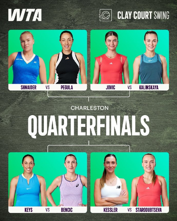Women's field: WTA500 Charleston concluded singles third-round matches early this morning Beijing time, with all quarterfinal spots determined. Defending champion and top seed Pegula overcame a 1-4 deficit in the deciding set, ultimately edging Italian Cocciaretto 1-6 6-1 7-6(1) to secure a quarterfinal berth. She will face Russian rising star Schneider in the quarterfinals, who swept Canadian Fernandez 6-3 6-0.