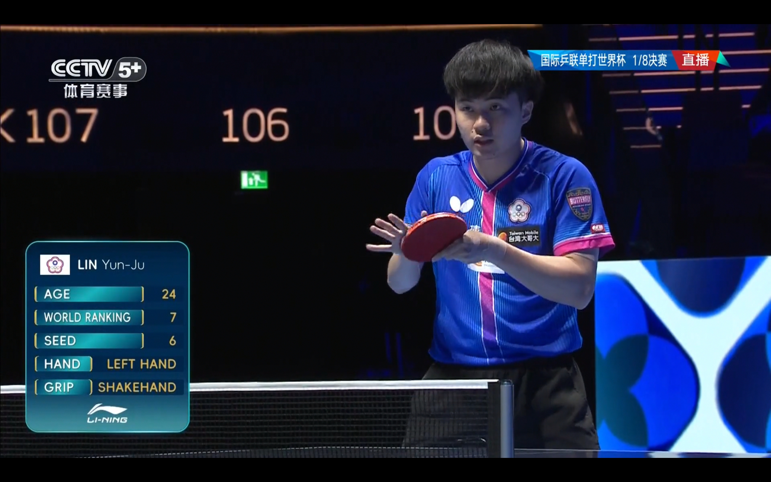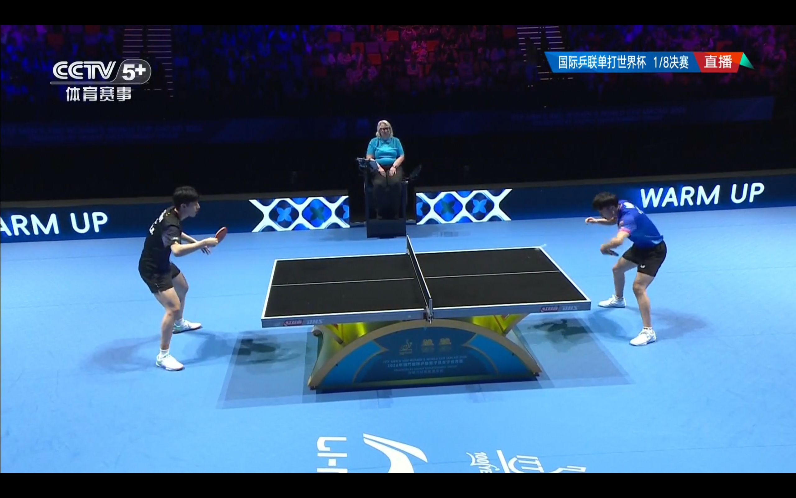 CCTV-5+ is broadcasting the Ping Pong World Cup quarterfinals match featuring Wen Ruibo versus Lin Yunru.