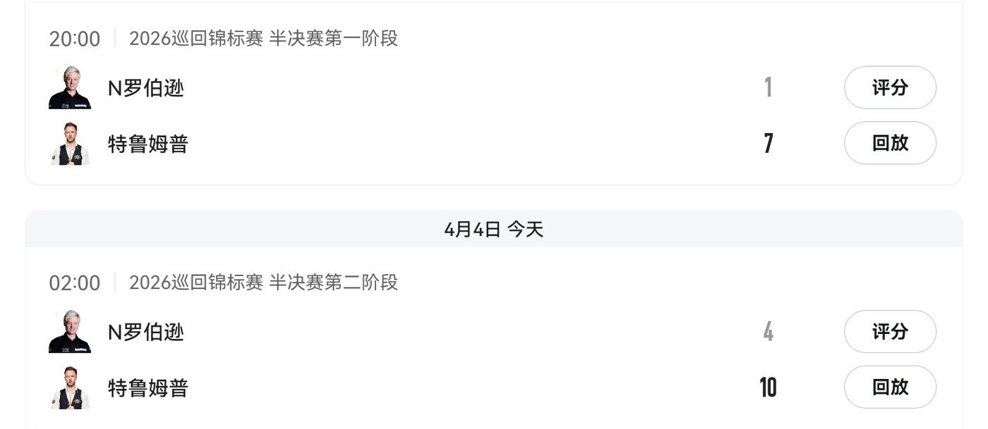 In the first stage, Trump led Neil Robertson 7-1; in the second stage, Trump defeated Neil Robertson 10-4, securing his spot in the finals first.