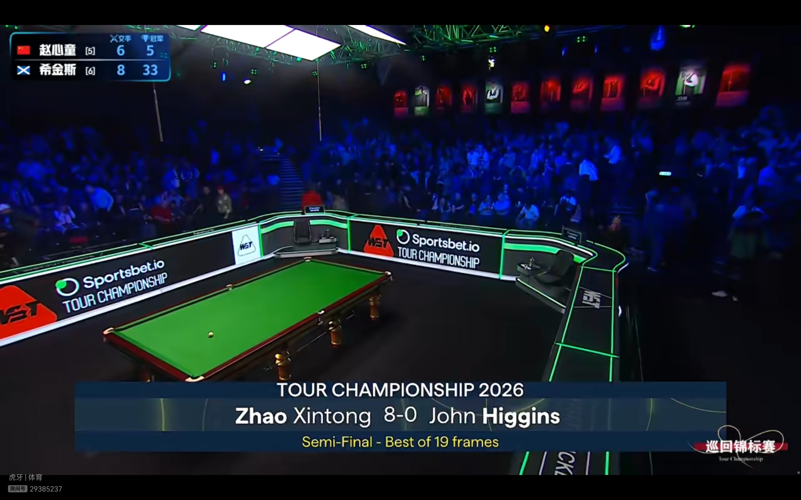 In the first stage of this match, Zhao Xintong achieved an eight-frame winning streak against Higgins, currently leading 8-0.