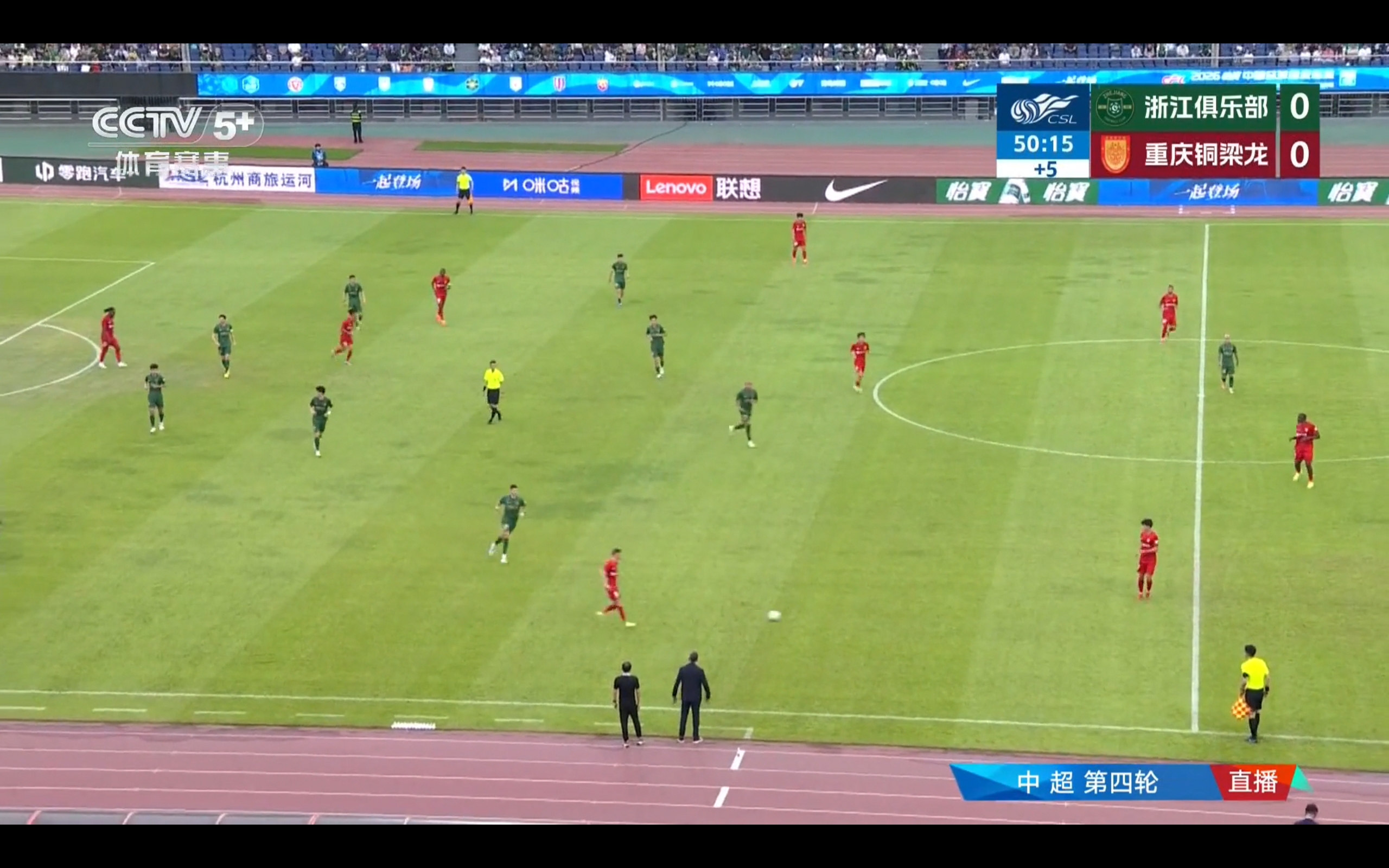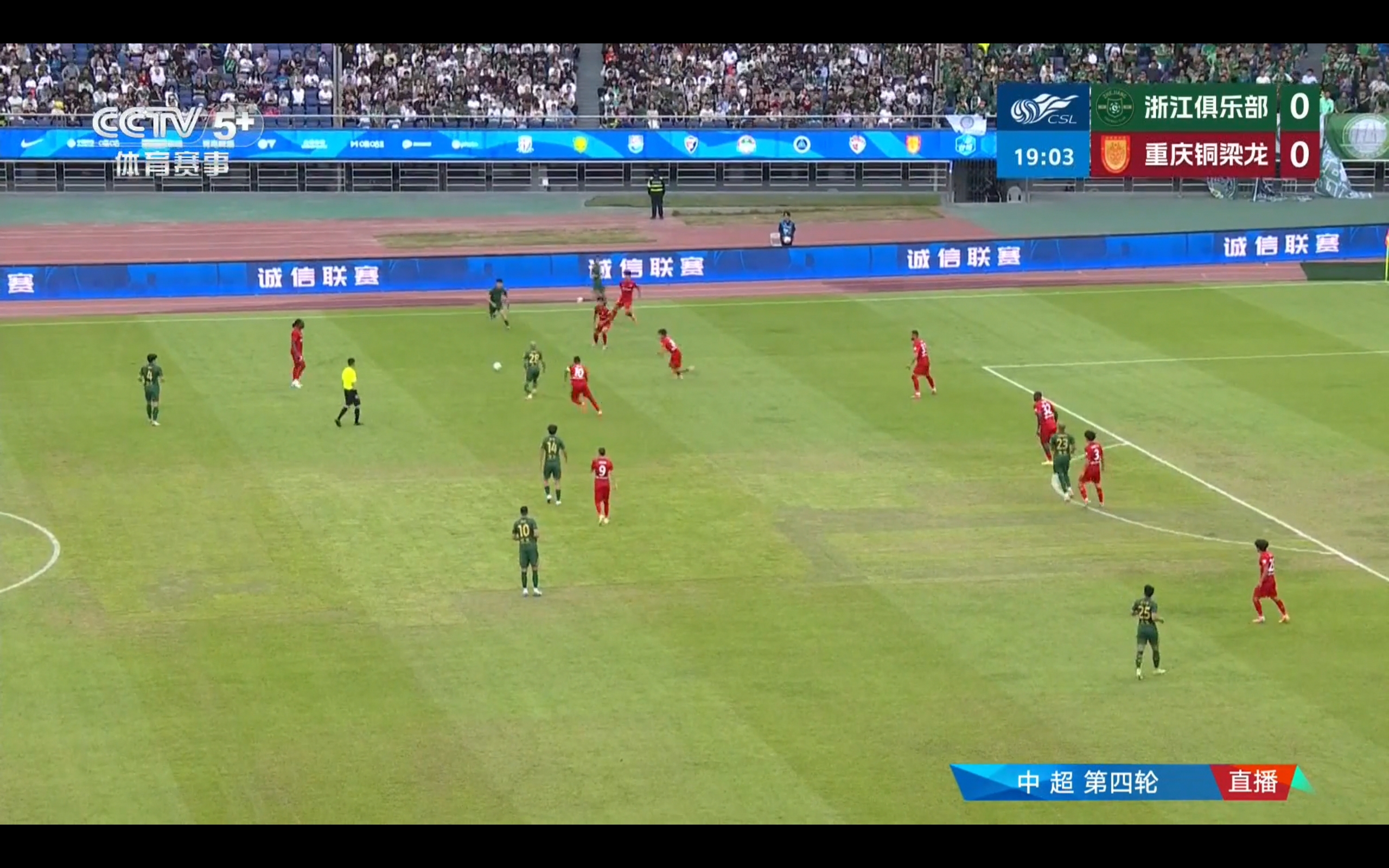CCTV-5+ is currently broadcasting the Chinese Super League match between Zhejiang Greentown and Chongqing Tongliang Long.