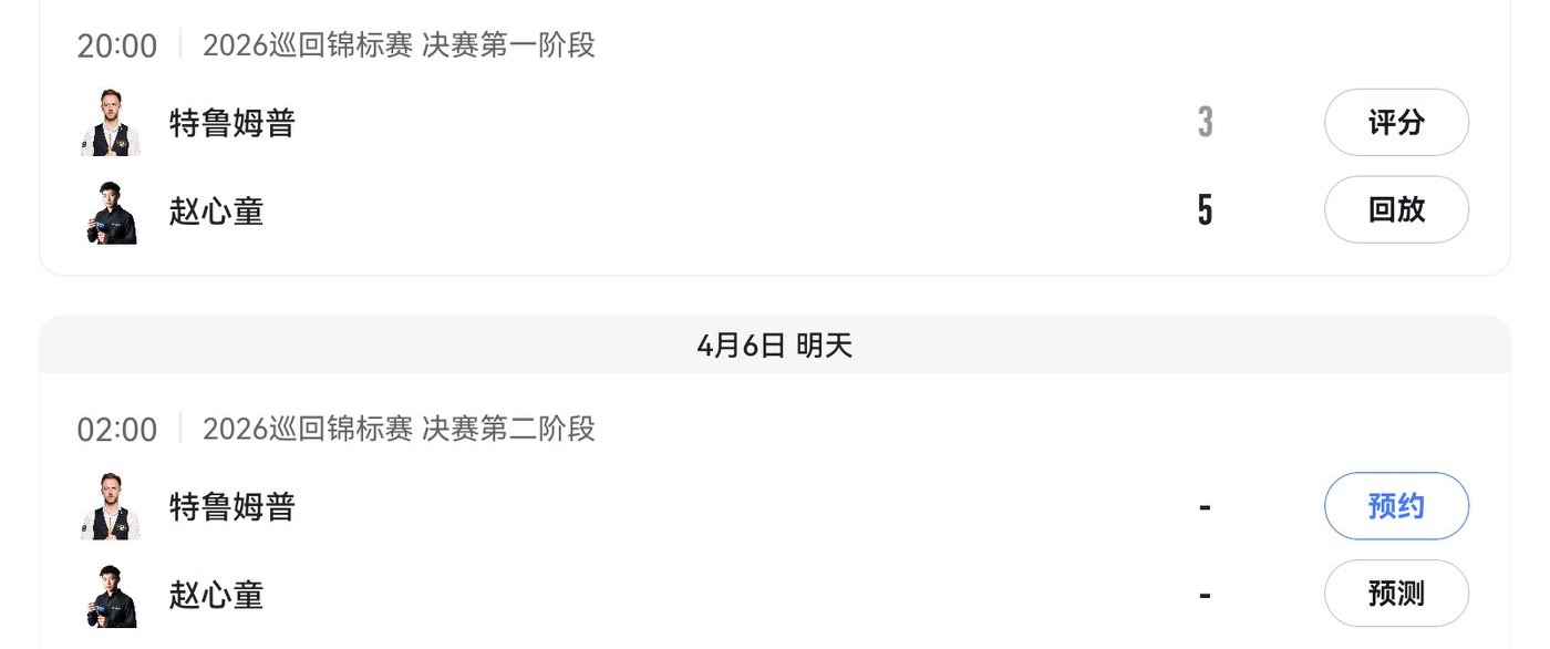 The second stage of the Snooker Tour Championship final is tomorrow (April 6, 2026), Zhao Xintong vs. Judd Trump, free live on Huya.