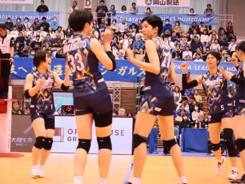 Okayama started enthusiastically, gaining a point advantage while foreign player Bich Thuy was performing excellently. However, Hisamitsu quickly responded, equalized and overtook, pushing the "Seagulls" into a chasing position.